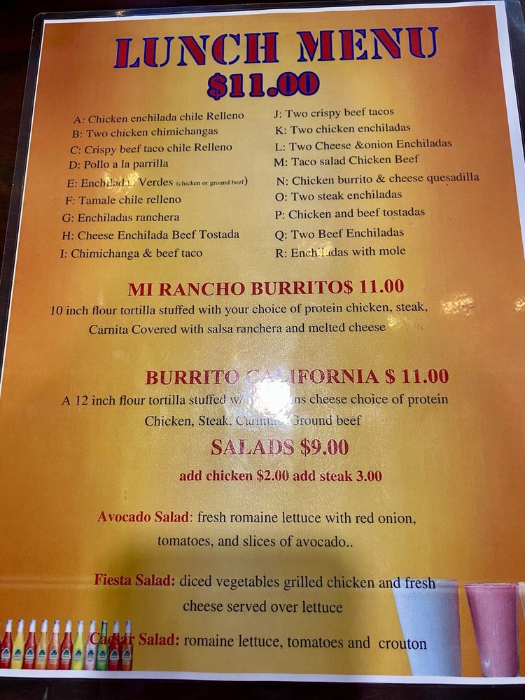 Sizzling peppers and onions in Mi Rancho homemade fajita mole sauce. Served with rice, beans and three flour tortillas.