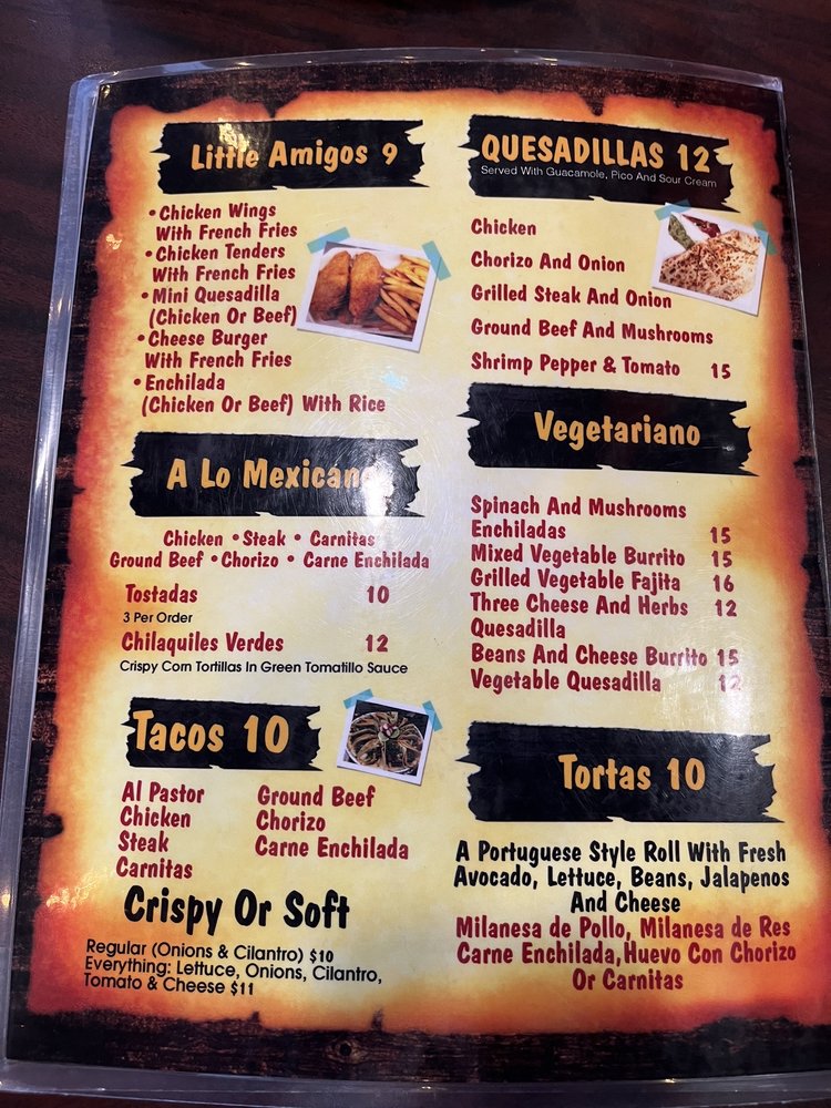 inch flour tortilla filled with sauteed vegetables, topped with mi rancho salsa ranchera and melted cheese, served with rice and beans. Prepared with your choice of chicken, carnitas, ground beef or steak. Additional charge to prepare with shrimp or make it Supreme (chicken, steak and shrimp).